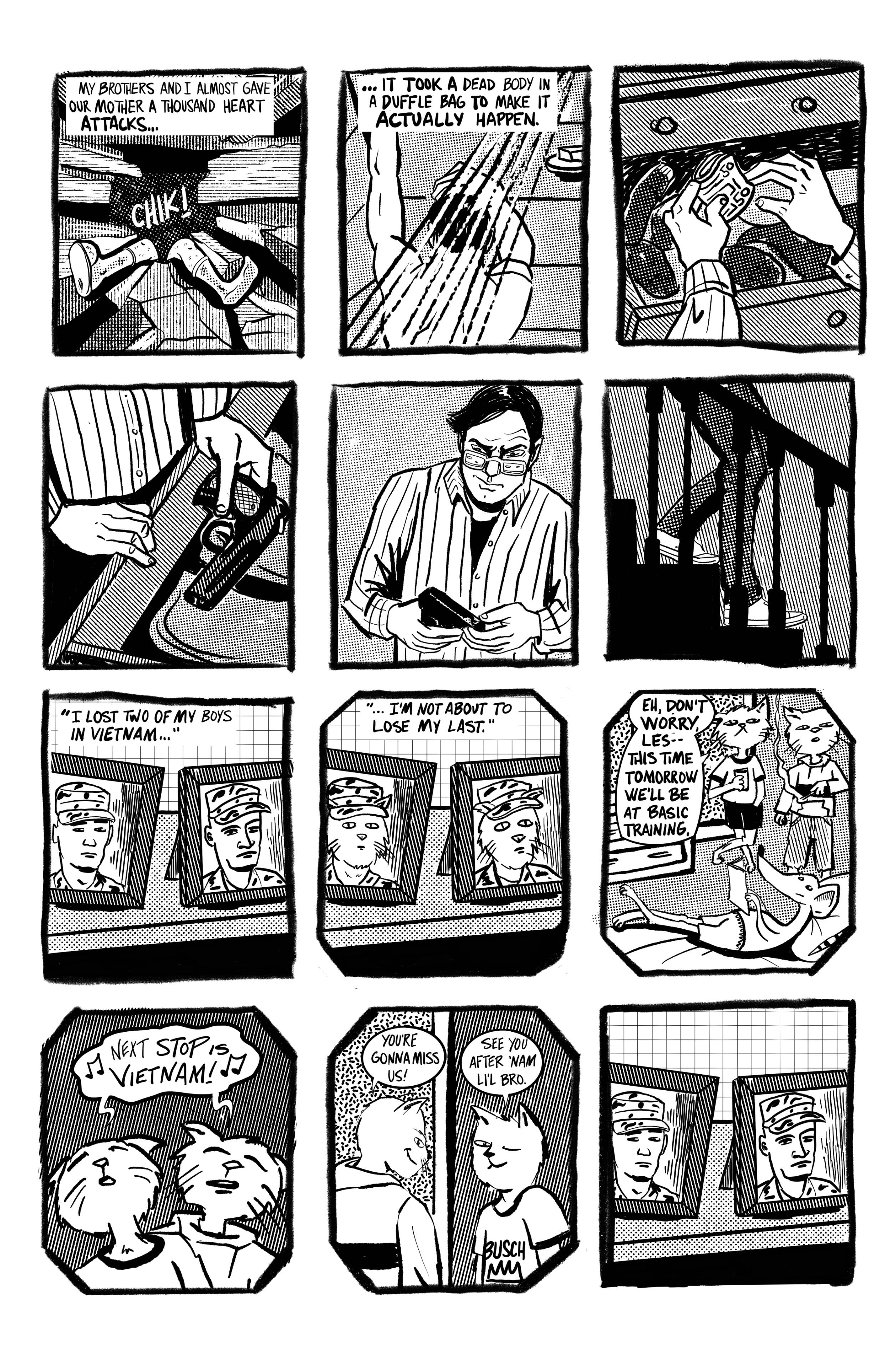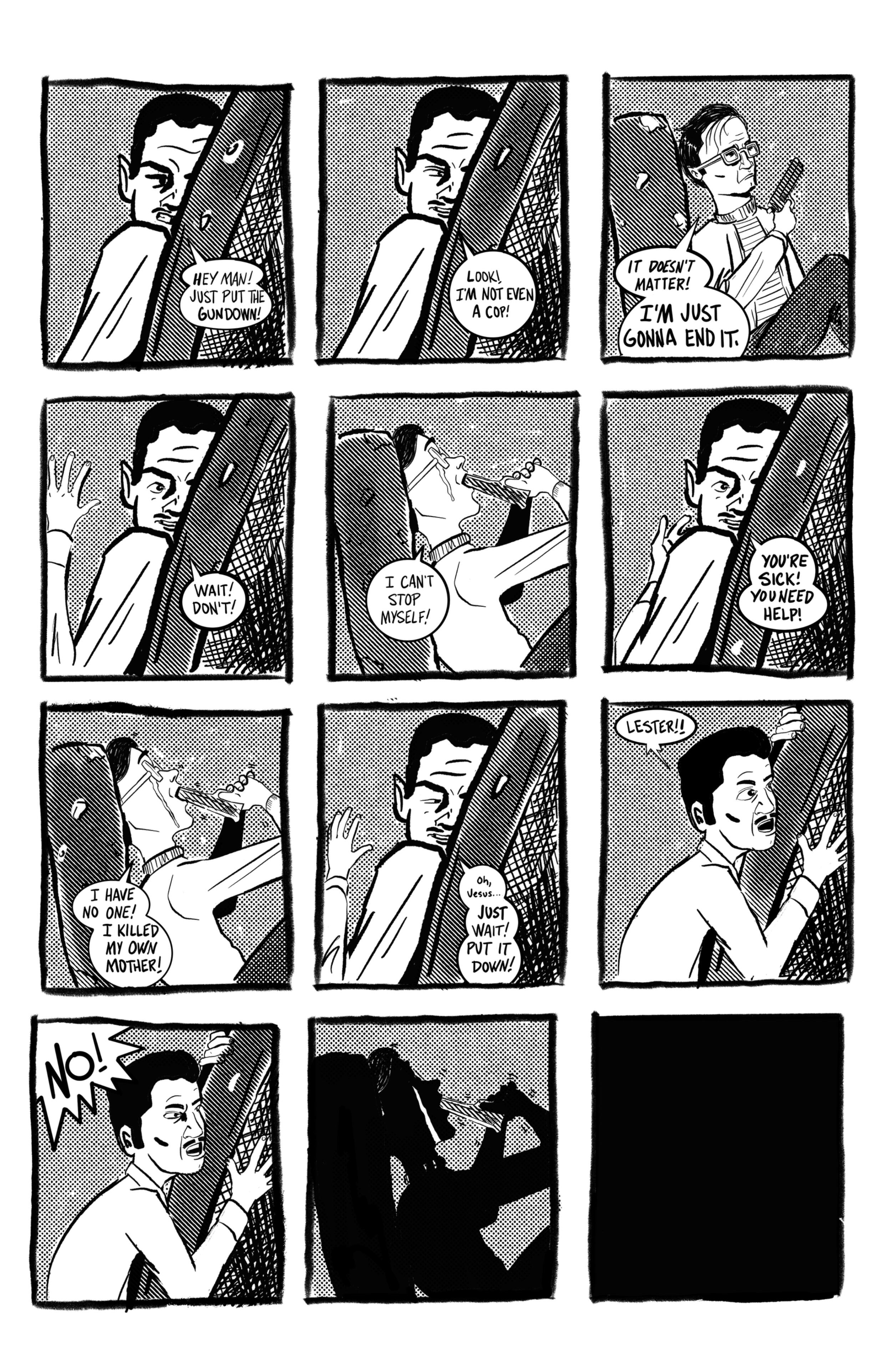 I make long-form comics—writing, drawing, and editing each book without collaborators.My work focuses on violence, American myth, and the way real harm gets shaped into story and entertainment. The books often take years to complete because I’m more interested in honesty than speed.These comics exist because I stayed with them and finished them